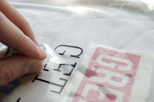 Sử dụng máy ép nhiệt để ép decal lên áo và lột bỏ phần decal trong.